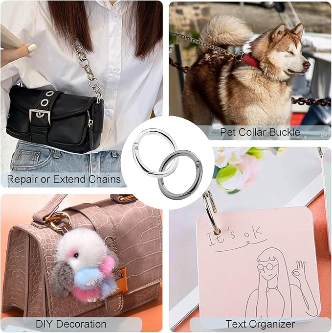 - Ease of use: Spring O ring keychain clip design, simple to use and easy to open and close, can be connected and released quickly, round trigger snap ring perfect for an extend for your handbags or a replacement ring for straps, spring o ring are an indispensable quality accessory for repair items