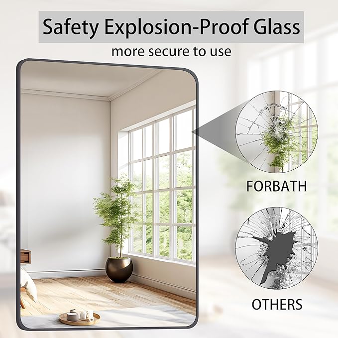 - Safe & Secure Shipping: The packaging of this wall-mounted bathroom mirror is well-designed and safe, shipped with all-round protective polystyrene foam and passed the drop test. No need to worry about breakage. The FORBATH team will ensure the mirror arrives safely.
