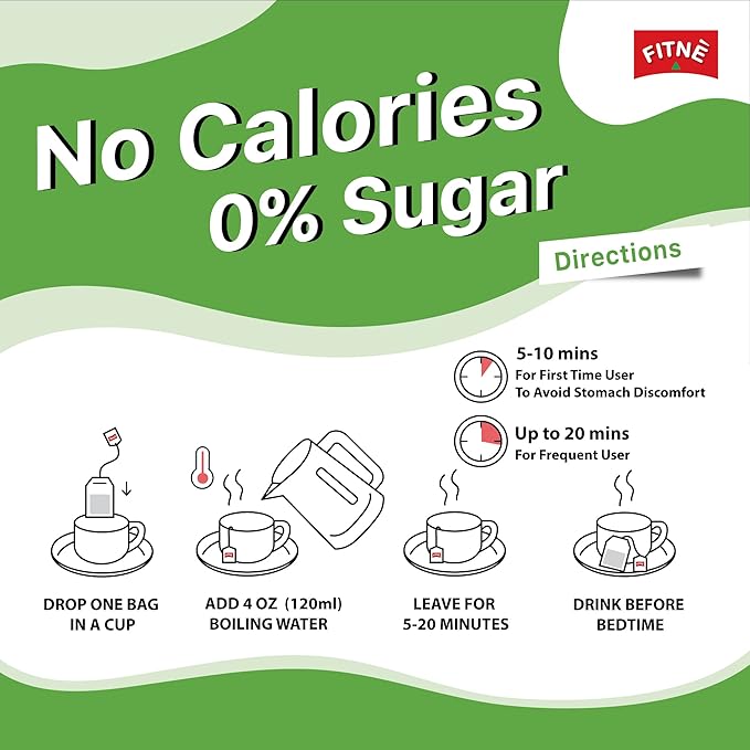 - GREEN TEA - FITNE herbal infusion tea made from 100% herbs of garcinia, senna leaves and pods. Fresh, natural and aromatic tea for green tea lover. Night cleanse tea with Double-Chamber tea bag ensure quicker and more effective diffusion.