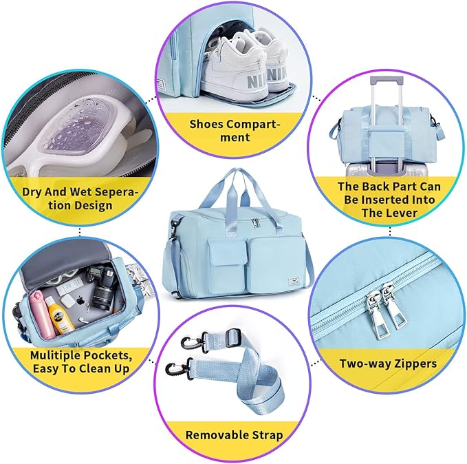 • Various Applicable Scenarios: The multifuctional bag is a great choice to be used in various ways: gym, workout, sports, dance, ballet, swim, travel, weekender, overnight, hospital and etc