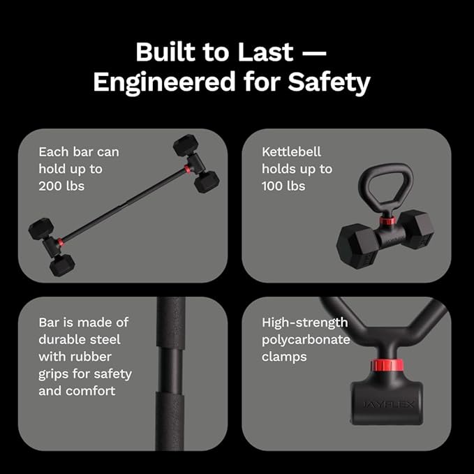 - TRANSFORM YOUR DUMBBELLS: Turn almost any dumbbell into a weight-adjustable barbell or kettlebell set with the Jayflex Hyperbell Bundle for home workouts and strength training.