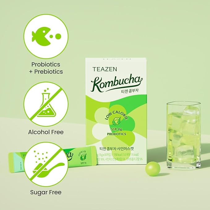 - ✨KOREA's No.1 Kombucha brand, TEAZEN! As the first kombucha powder tea in Korea, TEAZEN Kombucha has become a beloved beverage, surpassing 400 million sticks sold globally. With just the right amount of fizz, it offers enjoyment with every sip, and its refreshing fruity aroma helps everyone to enjoy delicious Kombucha.