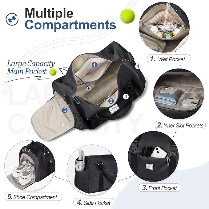 - ๐๐๐ญ ๐๐จ๐๐ค๐๐ญ & ๐๐ก๐จ๐ ๐๐จ๐ฆ๐ฉ๐๐ซ๐ญ๐ฆ๐๐ง๐ญ: The wet pocket is perfect for storing sweaty clothes or towels after your workout; The shoe compartment allows you to easily store and access your gym shoes without dirtying the main compartment