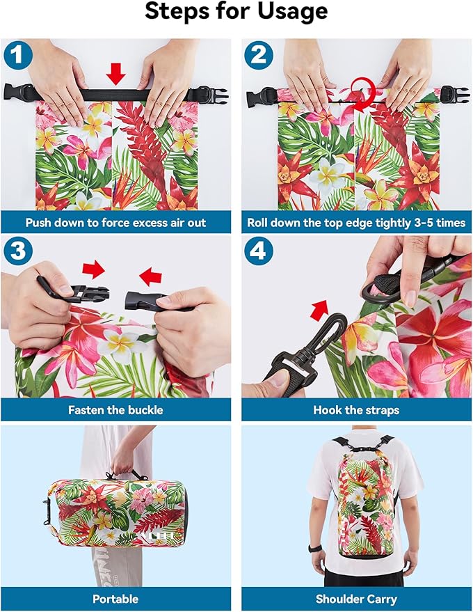 • Durable - Made of 0.02 in (0.5 mm) thick upgraded wear-resistant PVC material, it's suitable for all kinds of outdoor activities. Waterproof bag is well adapted to various weather and environment