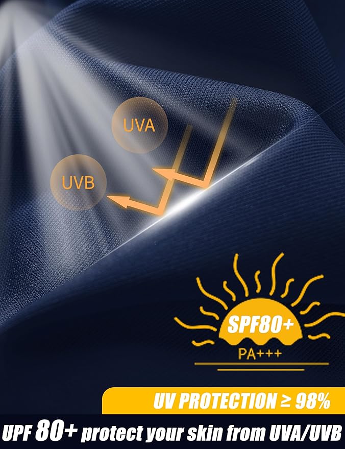 - UV Protection: The UPF 80+ fabric protects your skin from the harmful UVA/UVB rays, keeping you cool and active in the direct sunlight.