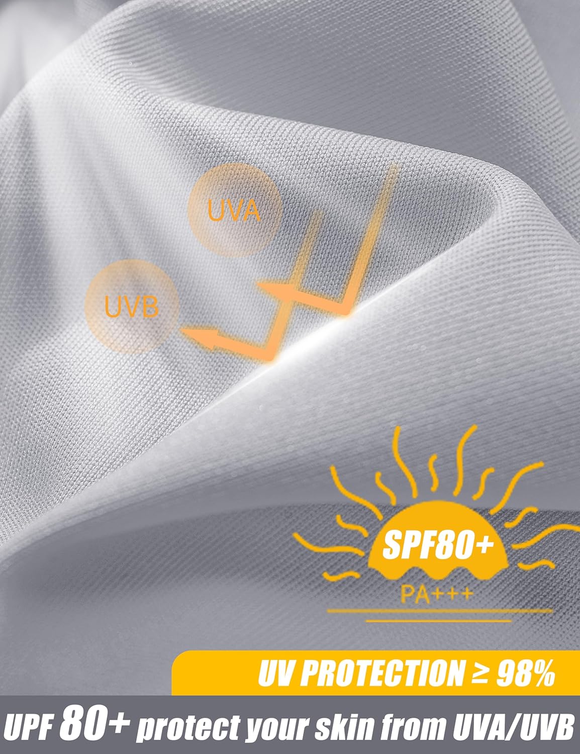 - UV Protection: The UPF 80+ fabric protects your skin from the harmful UVA/UVB rays, keeping you cool and active in the direct sunlight.