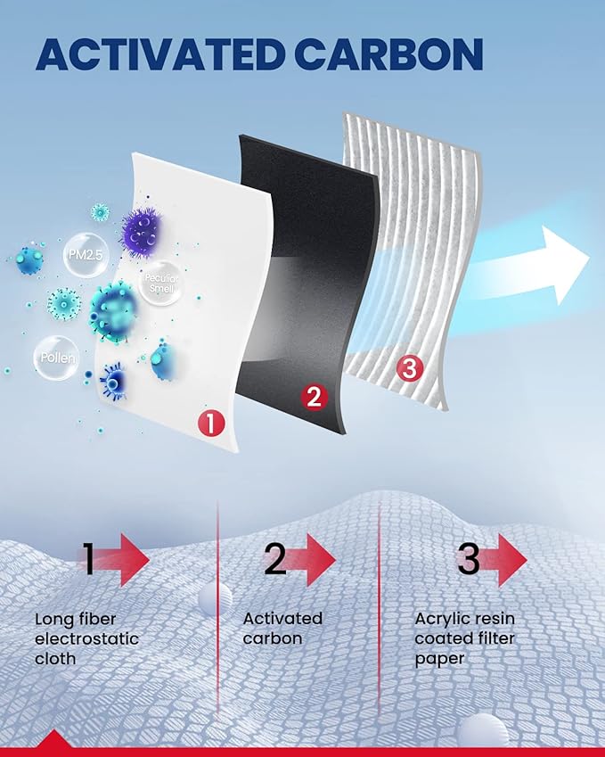 - Long life: KAX Cabin air filter has an Original Equipment standard of 18 layers of folds, filtering particles as small as 0.003 microns.18-layers cabin air filter has a larger area and longer service life