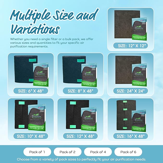 - UNIVERSAL CUT TO FIT: Each carbon filter can be tailored to fit a wide range of applications. Simply cut the filter to the required size for a perfect fit. These versatile filters are ideal for use in air purifiers, vents, fans, windows, trash cans, litter boxes, range hoods, furnaces, HVAC systems, dehumidifiers, and many other uses. This customizable design ensures no gaps for unfiltered air, enhancing the efficiency of your devices.