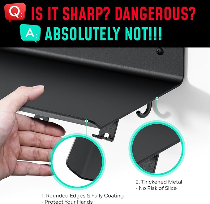 - Rounded Edges & Fully Coated: Crostice accessories shelf designed with rounded edges and a fully coated surface for safe usage; ideal for homes with children or pets; thickened metal plate construction enhances longevity; protected by US Design Patent