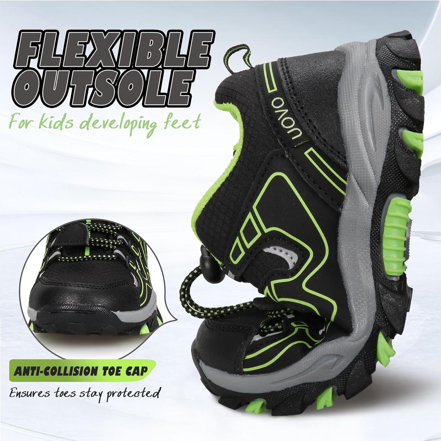 - NON-SLIP RUBBER SOLE -Kids trainers/hiking shoes specially feature lightweight durable rubber sole have deep flex grooves for maximum grips in all directions .