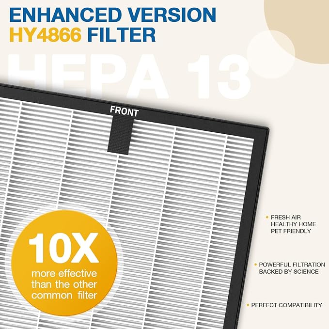 - ใ๐๐๐ฅ๐ฎ๐๐๐ฅ๐ ๐๐๐๐ค๐๐ ๐ใPackage includes 2 Pack HY4866 True HEPA Filter + 2 Pack Extra Pre-filter. This electrostatic cotton pre-filter to preferentially attach hair, pet fur and more large particles, alleviate the burden of the filter element, and extend the time of the filter element's adsorption saturation.You can replace the pre-filter depends on your usage and it helps to extend the using lifespans of HY4866 true hepa filter.