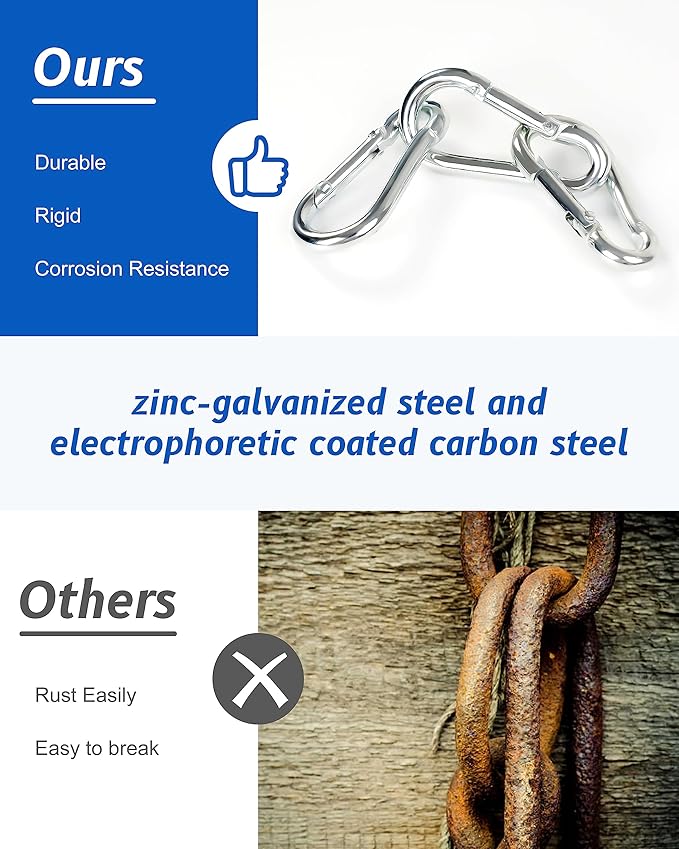 - 【Anti-Rust and Durable】The carabiners are made of high-quality stainless steel, they are wear-resistant, rust-proof and can be used for a long time even under the sea.