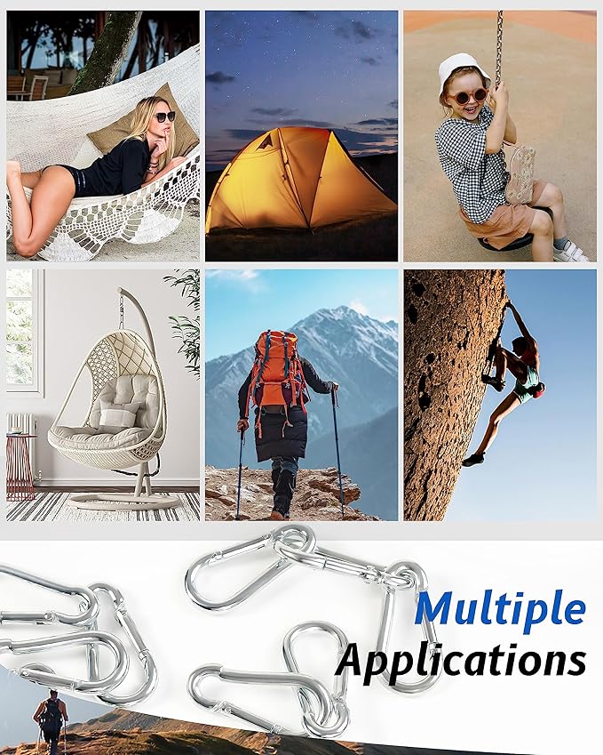 - 【Sturdy】The powerful 120 pounds load makes the carabiners clips strong enough to hook, hang, or attach your important tools or items.