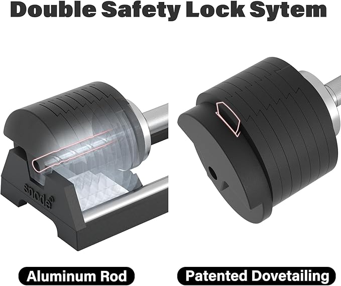 - 【Unique Structure】The grip and the first plate are integrated to ensure that the handle does not shake/rattle. How we make it drop-Proof: When dropping, the stress-bearing is always on the first plate which we already make it really durable. Also the dual design of the telescopic rod and dovetail groove ensures the plates won't fall off during workout.