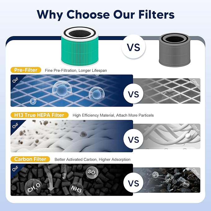- π―-ππ‘-π ππππ§π₯ππ§ππ’π‘ - Our advanced core 300 filter replacement for levoit air purifier adopts 3-Stage High Efficiency Filtration System ( β Ultra-fine Nylon Pre-Filter β‘H13 Grade True HEPA Filter β’Activated Carbon Filter with ARC Formula) to ake away 99.97% of airborne substances as small as 0.03 microns, automatically improving air quality and promoting better health and well-being for you, ideal solution for homes with pets, smokers, open layout kitchens