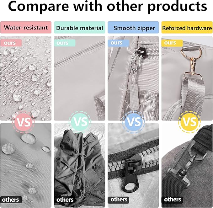 - DRY WET SEPERATED DESIGN & SHOE COMPARTMENT: The high density waterproof pocket can help you to divide wet clothes, towels, shampoo or cold drinks. Built-in shoe compartment keeps your shoe storage private and fresh. Additional storage pockets to organize your items and necessities.