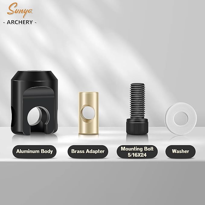 - 100% Machined aluminum, black anodized. Superior lightweight only 1.6oz will not burden your archery. 6061 Aluminum is the most common materials in Sunya Expedition Archery Product Series. Solid Brass adapter without nickel.