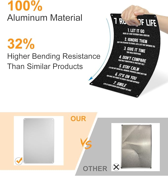 - 【100% Aluminum Made】Lightweight yet robust, metal sign radiates a sleek metallic finish that resists corrosion, ensuring your metal sign remain timeless in both aesthetics and quality.