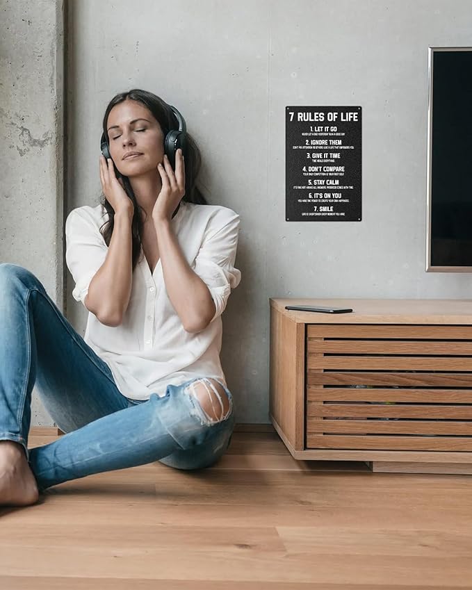 ALKB Inspirational Metal Sign for Teen Bedroom Decor - Motivational Wall Decor for Bedroom Office Girls, Boys, Teenager - 7 Rules of Life 8x12 Inch