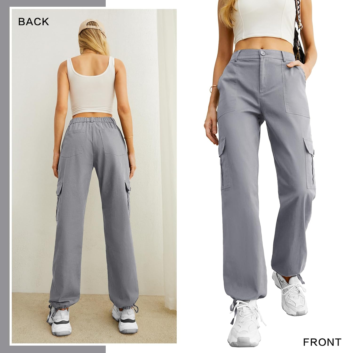 - Match: This cargo pants with smooth contour and beautiful appearance, basic style which is bloggers favorite, perfect for your everyday essentials collection in your closet. These cool girl style pants can be paired with Crop Tops, T-shirts, sweaters, cardigans and jackets for spring, summer, fall and winter