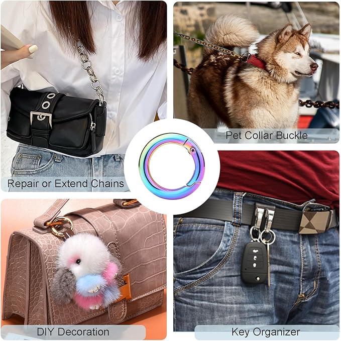 - Creative Matching: Round keyring clip can decorate and replace most items, such as key ring, keychain hardware, small dog leashes, dog collar tags, purse hardware, handbag shoulder bag strap, exercise band, bag tassel, keychain clip and outdoor paracord keychain lanyard or match with your desired hanging crafts or decorations, carabiner o ring is a great DIY accessory, can be given as a gift to a friend