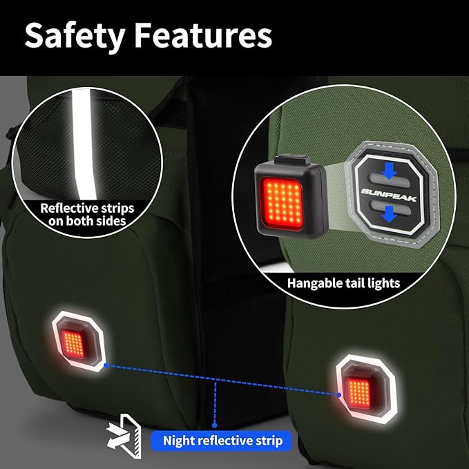 - Night protection: The saddle-style bike bag has reflective trim and logo, making you more visible at night; the logo is uniquely designed to fix an additional tail light; providing security and escort at night