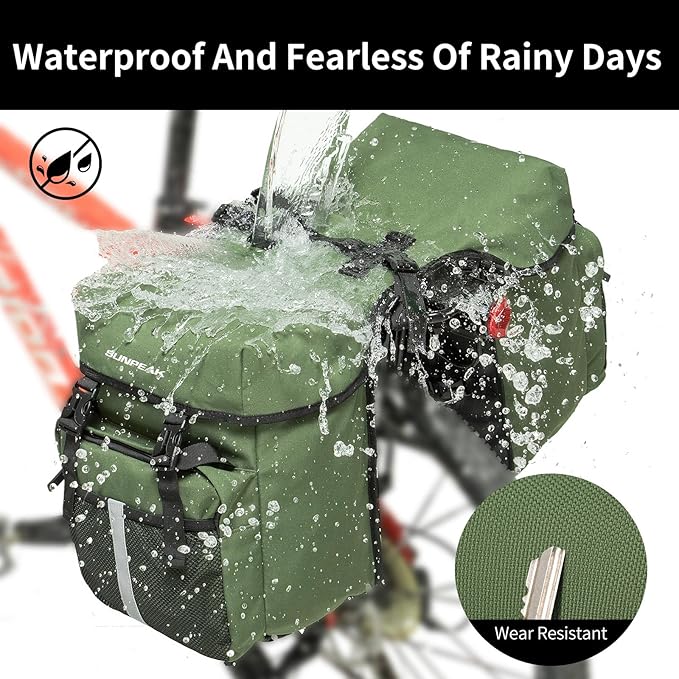 Bike Bag Accessories Panniers for Bicycle Rear Rack Bag 45L Waterproof Mountain Electric Bike Saddle Bag for Cycling Traveling Commuting Green