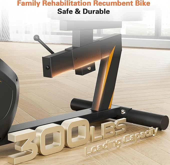 - [Ideal for Rehabilitation & Low-Impact Exercise] The Goimu Recumbent Bike is perfect for rehabilitation and low-impact workouts. Its 30-pound flywheel and heavy-duty steel frame provide stability and safety for users up to 300 lbs. Whether you're recovering from knee, lumbar, or ankle injuries or simply looking for a gentle workout, this bike offers a safe and effective way to stay active.