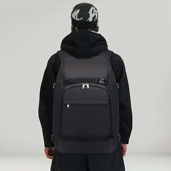 JIANYA Ski Boot Bag, 50L Waterproof Travel Backpack for Snowboard, Ski Helmet, Goggles, Gloves & Accessories, Black
