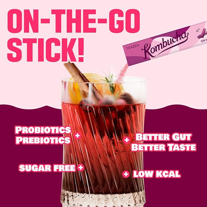 - ✨KOREA's No.1 Kombucha brand, TEAZEN! As the first kombucha powder tea in Korea, TEAZEN Kombucha has become a beloved beverage, surpassing 400 million sticks sold globally. With just the right amount of fizz, it offers enjoyment with every sip, and its refreshing fruity aroma helps everyone to enjoy delicious Kombucha.