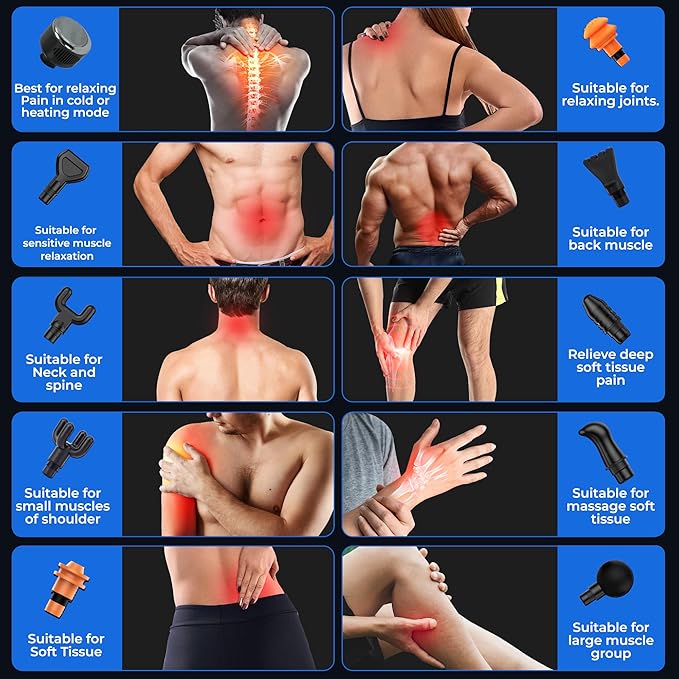 - Multiple Speeds and Attachments: Tailor your massage experience with 20 speed levels and 10 interchangeable heads. Whether you need an intense sports massage or a gentle relaxation massage, MuscleBuddy has got you covered. Delivers depth high penetration reaches and massages muscle tissue 10mm depth, relieving muscle fatigue and pain. Just increased or decrease the intensity of your massage at your desirable choice.