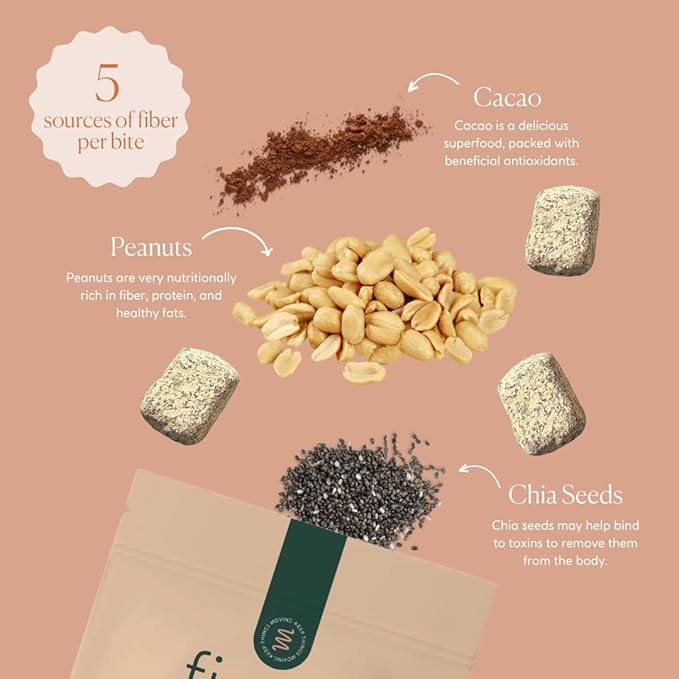 Fiber Supplement - 5g Daily Fiber Bite - Supports Regularity, Digestion and Gut Health - All Natural Ingredients, Peanut Butter Cacao Flavor, 30 Servings