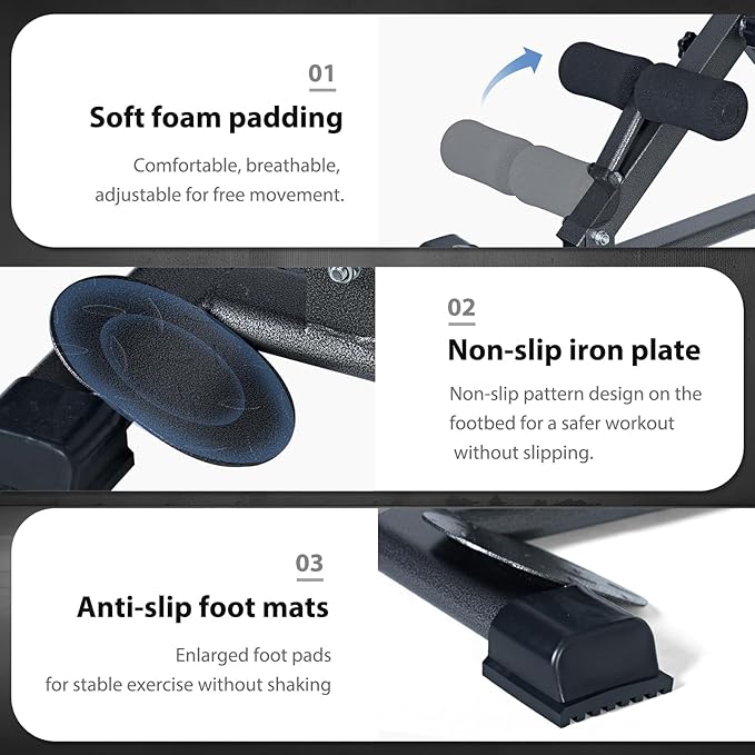 - 【Humanized Design】Our sit-up machine back stretch chair back stretch chair machine is equipped with widened non-slip mat to improve the safety of exercise, you do not have to worry about the Roman chair will move due to three different heights; The design of the handrail allows you to grasp at any time during exercise to avoid being unable to get up, causing muscle and ligament strain. Our upgraded Roman chair is the perfect companion for you.