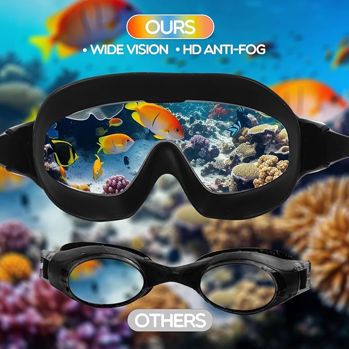 - High Clarify Anti Fog Lenses: the PC lenses of the adult swimming goggles are designed to deliver high clarity while swimming, and they feature an anti UV design to protect the eyes from harmful UV rays; Additionally, the anti fog feature ensures clear vision underwater, enhancing the overall swimming experience