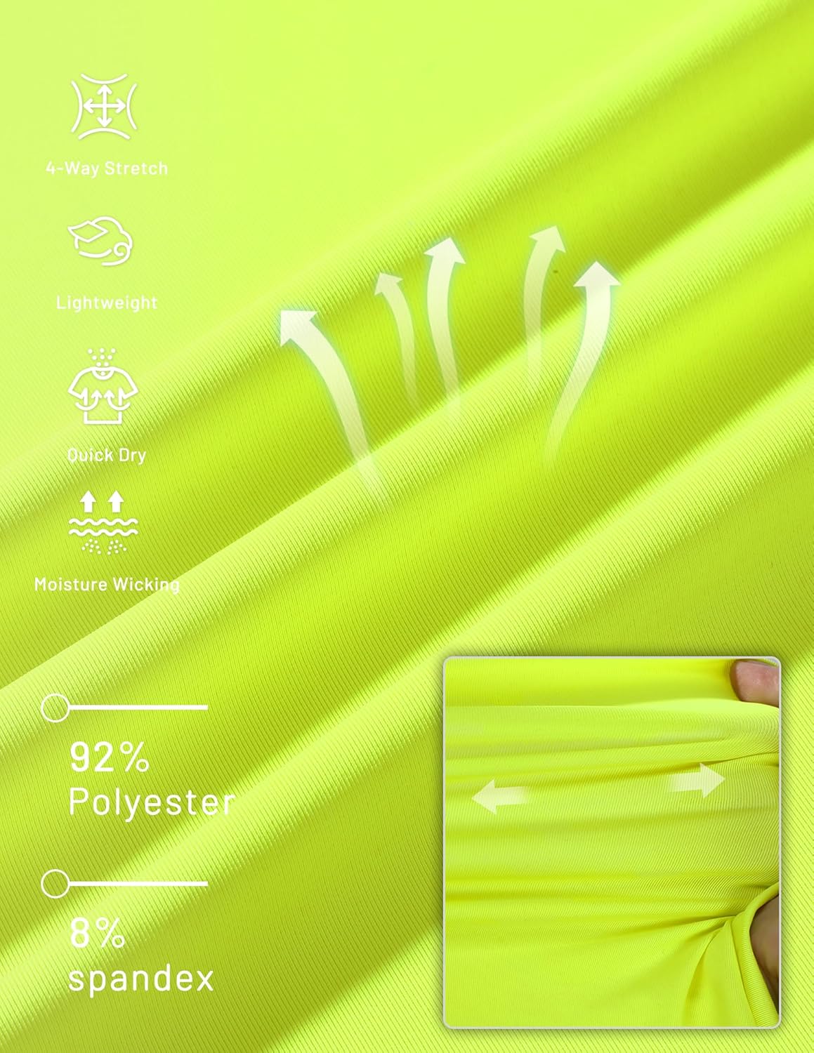 - Fabric type : 92% Polyester, 8% Spandex