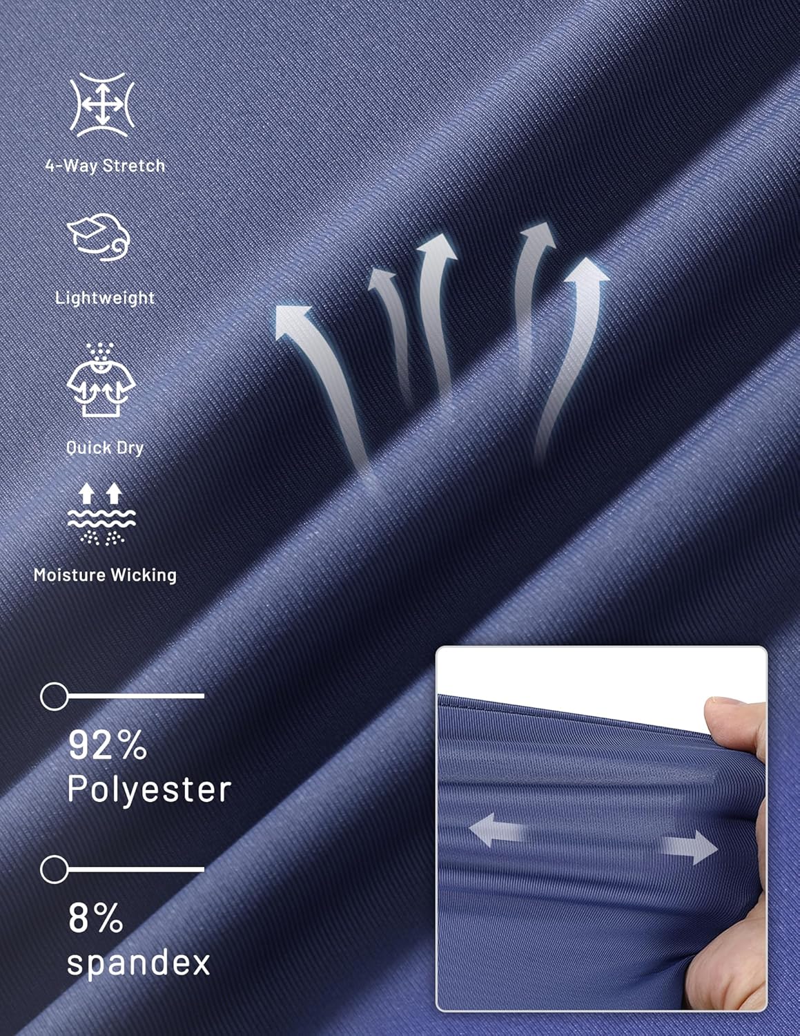 - Fabric type : 92% Polyester, 8% Spandex