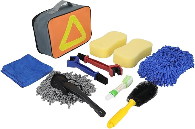 - ➤ALL-IN-ONE PACK -- 1 * Motorcycle Wheel Cleaning Stand, 1* Storage Bag, 1* Stiff Tire Brush, 1* Detailing Brush, 2* Cleaning Sponge, 2 * Chain Brush, 1* Towel, 1* Cleaning Gloves, 1* Soft Bristled Brush, as pictures.