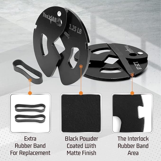 - INTERLOCK AREA: Designed to secure the rubber bands during dumbbell plate loading and unloading, our fractional weight attachments for dumbbells ensure hassle-free attachment, enhancing workout security and effectiveness without concerns about plates slipping off.