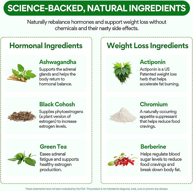 - Hormone Balance for Women At Any Stage of Menopause - With natural hormonal balancing ingredients such as Black Cohosh & Ashwagandha, MenoSlim Advanced supplements estrogen to help alleviate hot flashes, night sweats, mood swings, brain fog & more.