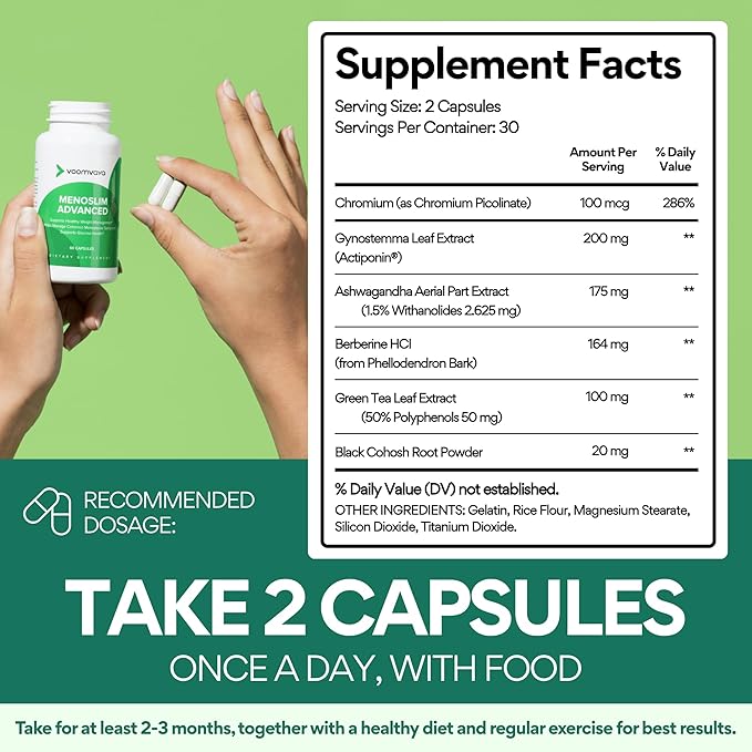 VoomVaya MenoSlim Advanced Menopause Weight Loss for Women - Menopause & Perimenopause Supplements for Women - Estrogen Supplement & Menopause Relief for Hot Flashes, Bloating, Energy - 60 Capsules