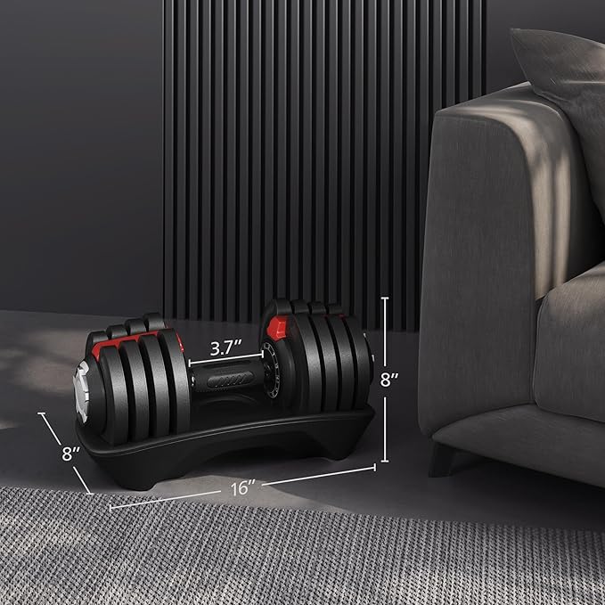 - 1-SED ADJUSTMENT FEATURE:With just a quick grip, twist, and lift of the selectorized anti-slip handle, you can easily switch the 12 adjustable weight dumbbells settings in just one second. The hassle-free customization is aided by clear dials that ensure easy readability