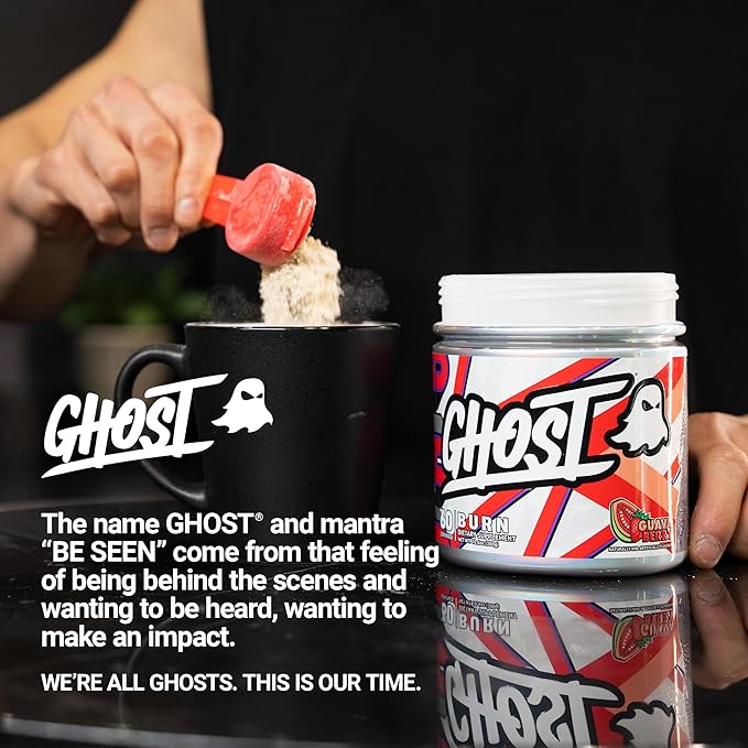 - Your New Favorite Thermo: GHOST Burn offers an advanced formula which will have you ready to attack shredding SZN head on. With natural caffeine and MitoBurn, you’ll be equipped to make the most out of your workouts or any activity where you’re looking to turn up the heat. Get ready to sweat, Legends. Guava Berry flavor. 60 scoops per container.