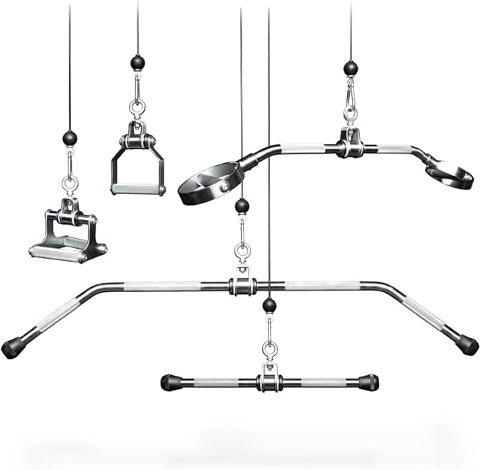 - ATTACHMENT COMPATIBILITY: This option comes with two steel D-handles with nylon straps to connect to the cables and the Pro Series Attachment package which includes: Neutral Grip Lat Bar, Traingle Rowing Attachment, D Cable Handle, 48 Solid Lat Bar, and Straight Bar. Compatible with tons of cable attachments, such as the ankle cuff, sports handle, tricep rope, tricep pushdown bar, multi-grip curl bar, and much more. Add the Pro Series or Performance Series attachment package.