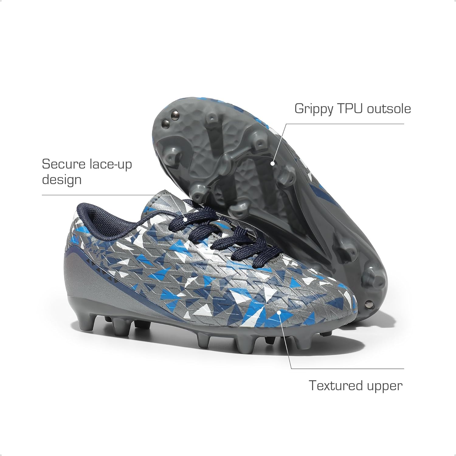 - Lightweight Comfort: These kids' soccer shoes feature a lightweight construction that allows them to roam the field freely. Even during extended play, these lightweight soccer cleats won't cause fatigue, ensuring they can perform to their fullest.