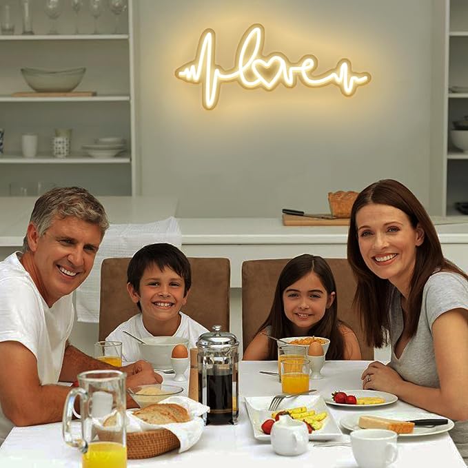 - 【Make Your Gift Perfect 】The transparent and textured LED neon sign emits a romantic and gentle glow, accompanied by the words Heartbeat "Love ", adding warm colors to your room and creating a romantic atmosphere. Neon lights are an ideal highlight for home decoration or gatherings, adding rich colors and romantic atmosphere to a simple life.