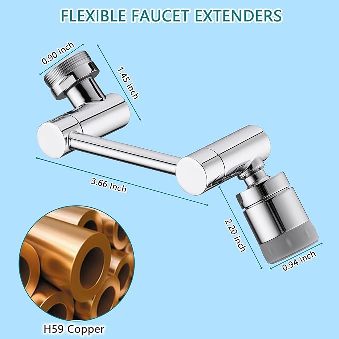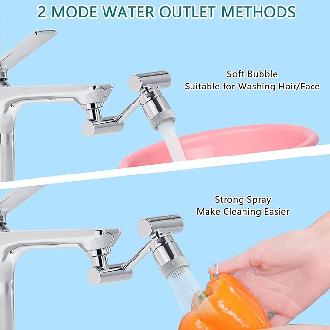 - 【1080 Rotating Filter Faucet Aerator】This swivel sink faucet aerator extension can be rotated 1080 degrees. Convenient for dish washing, hard-to-reach corner sink cleaning. By adjusting the robotic arm, both the elderly, adults and children baby can achieve an easy and comfortable use angle. It's also friendly to dogs and other pets shower