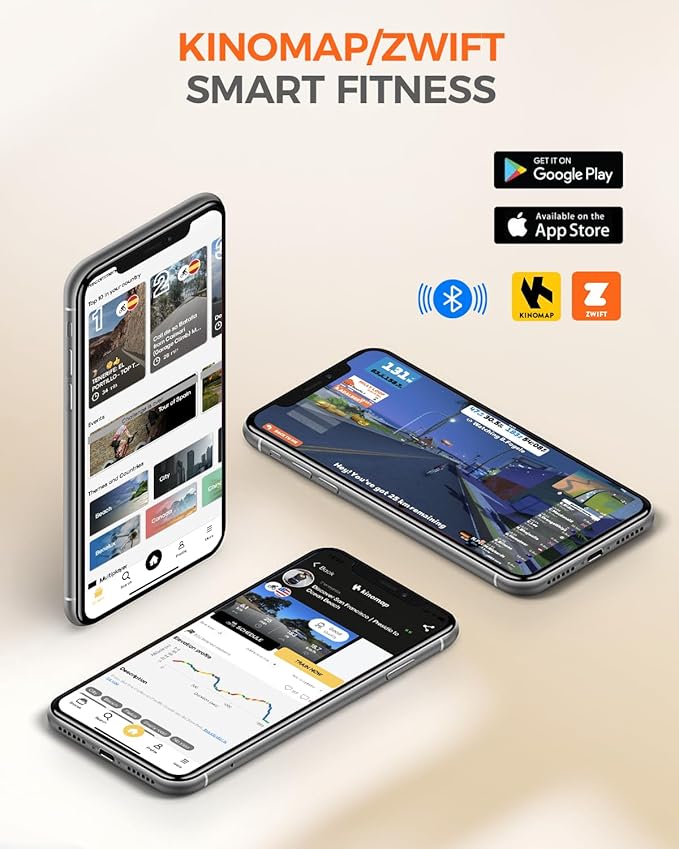- Connection to Fitness APP: Built-In Sensor, compatible with KINOMAP, Zt APP. With KINOMAP/Zt Smart Fitness APP, you can record and view training data and share fitness data on social media. Make your exercise more fun
