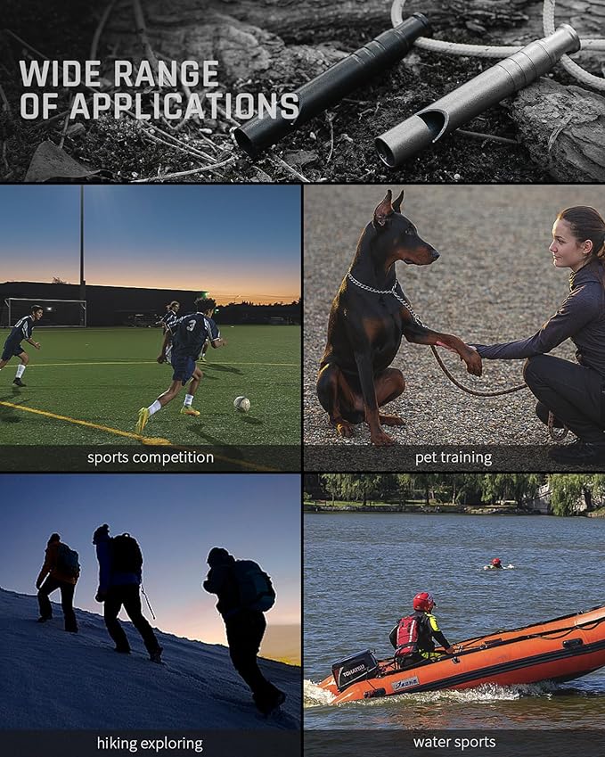 - Multifunctional Whistle: Titanium whistle keychain is versatile and perfect for outdoor use, such as survival, camping, hiking, lifesaving, pet training, refereeing, coaching, boating rescue signals and more. Our whistles can attract the attention of others from a long distance and make you feel safe and protected.