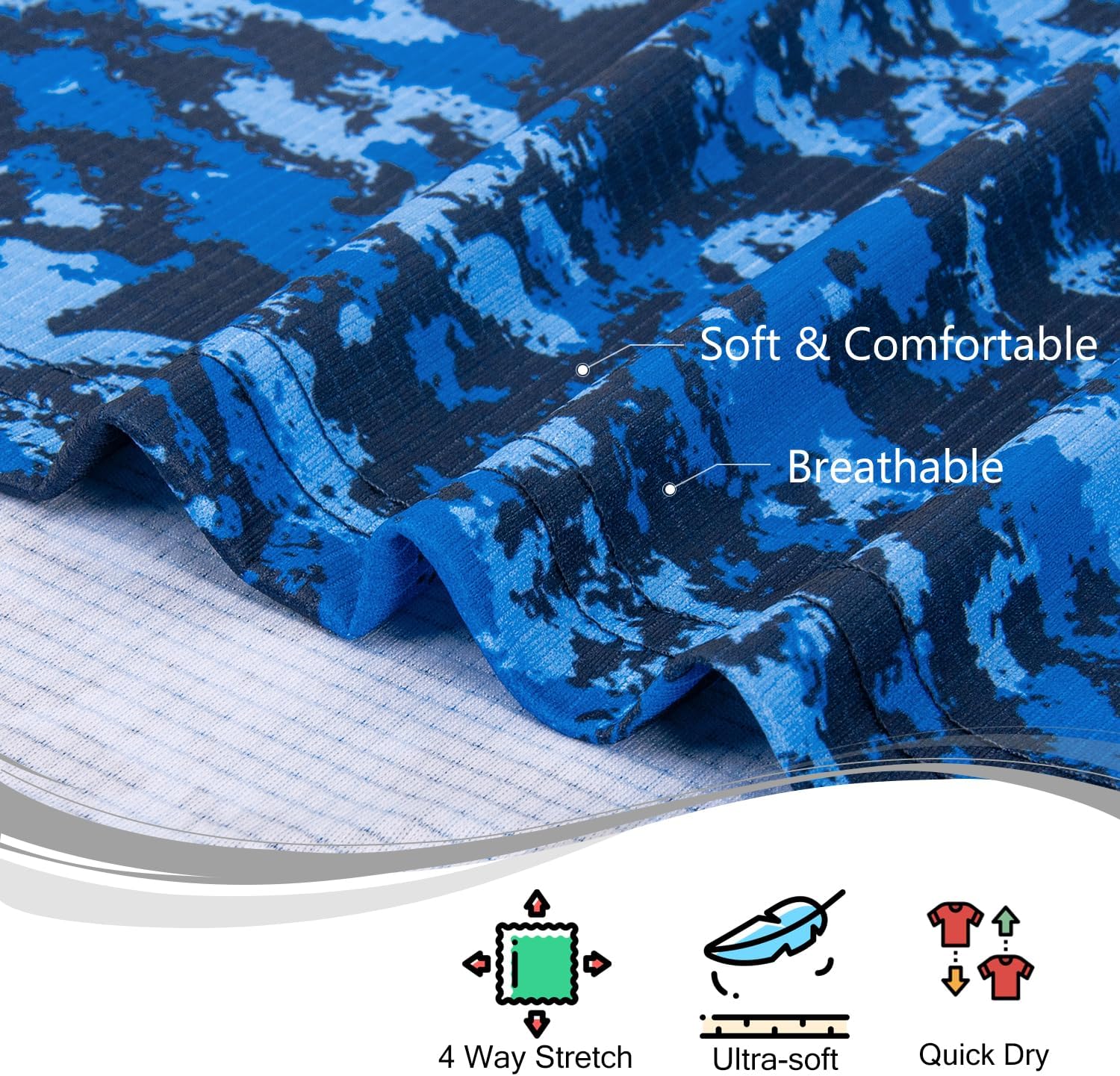 - QUICK-DRY AND SWEAT-WICKING: 95% Polyester + 5% Spandex. Silky and Wrinkle Free, High Stretch and Lightweight, Soft and Comfy. Wicks away moisture and dries remarkably fast by incorporating soft and breathable fabrics.