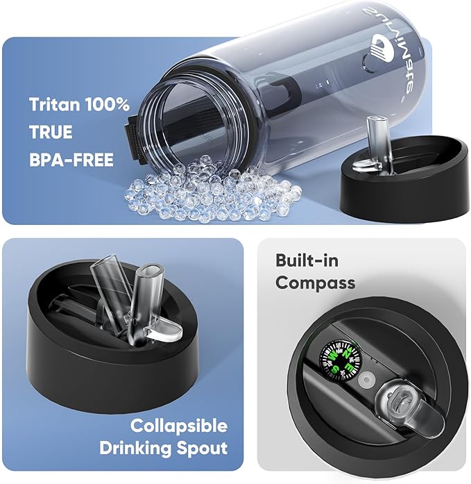 - [Built-in Compass] - Perfect for camping and outdoor exploration, the water bottle is equipped with a built-in compass on its top, helping you navigate and stay oriented during your adventures.